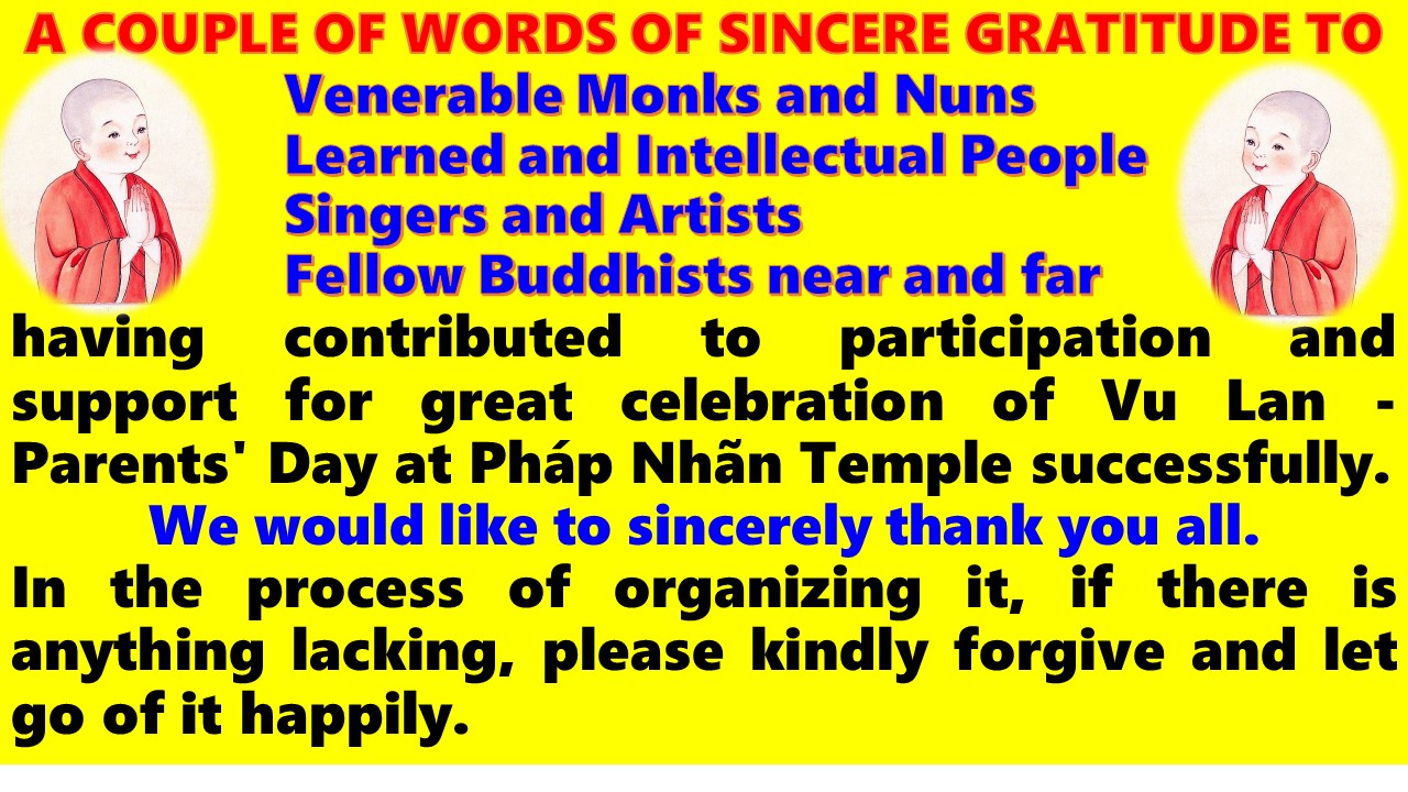 having contributed to participation and support for great celebration of Vu Lan – Parents’ Day at Pháp Nhãn Temple successfully.