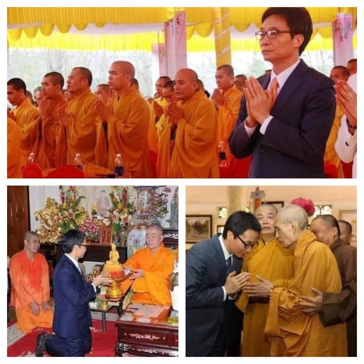 Vietnamese Deputy Prime Minister Vũ Đức Đam greeted each other’s hands to the Most Venerable Thero Thích Phổ Tuệ and others.