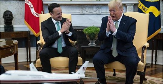 President Donald Trump and Irish Prime Minister Leo Varadkar greeted each other’s hands.