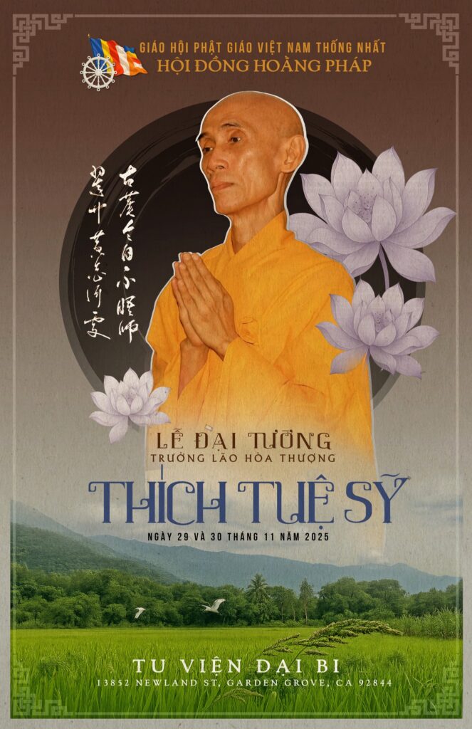 To commemorate the Most Venerable Elder Teacher of the Sangha, who devoted his entire life to the Dharma and the Nation, the Dharma Propagation Council of the Unified Vietnamese Buddhist Congregation will solemnly organize: