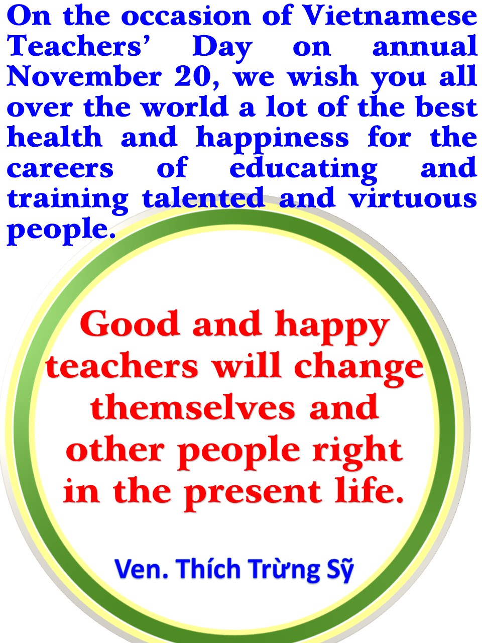 On the occasion of Vietnamese Teachers’ Day on annual November 20, we wish you all over the world a lot of the best health and happiness for the careers of educating and training talented and virtuous people for families, schools, and societies around the world.