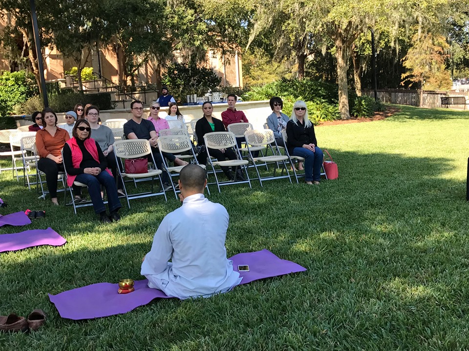 Vào Tuần Giáo Dục Quốc Tế (International Education Week) được tổ chức tại Rollins College mùa đông 2016, ban tổ chức có mời mình hướng dẫn thiền Phật Giáo. Họ cũng có phát thực phẩm và nước uống miễn phí. Khí hậu mát mẻ tuyệt vời. Mình giảng về chủ đề Các Yếu Tố Tự Do. Trong đó, mình triển khai hai ý chính là các yếu tố tự do theo văn hoá Tây Phương và các yếu tố tự do theo minh triết Á Đông.