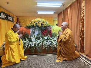 Trước tiên, chúng con nhất tâm kính lễ Giác linh Cố Trưởng Lão Hòa thượng Thích Tịnh Đức, Phó Tăng Thống Giáo Hội Tăng Già Nguyên Thủy Việt Nam Hải Ngoại, Viện Chủ Chùa Đạo Quang, Garland, Texas.