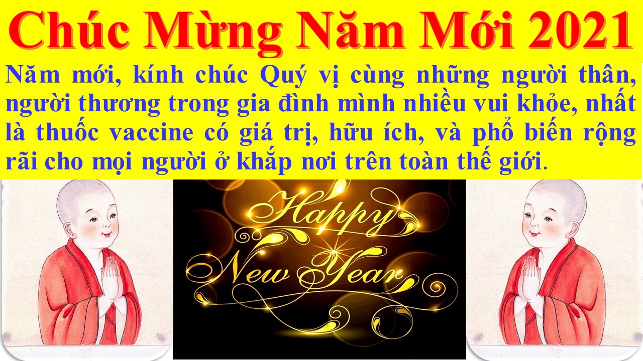 Năm mới, kính chúc Quý vị cùng những người thân, người thương trong gia đình mình nhiều vui khỏe, nhất là thuốc vắc-xin sớm có giá trị, hữu ích, và  phổ biến rộng rãi cho mọi người ở khắp nơi trên toàn thế giới.