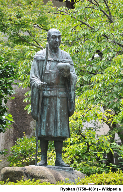 Một nhà thơ Nhật Bản cũng ưa thích tịch lặng là Thiền sư Ryokan (1758 – 1831). Ryokan ra đời trong năm 1758, tại ngôi làng hẻo lánh ven biển Izumozaki, thuộc tỉnh Echigo, bây giờ gọi là Quận Niigata. Vùng này, Honshu phương bắc, còn đuợc gọi là “xứ tuyết,” nơi các trận tuyết mùa đông dày ngập tới nổi buộc cư dân phải rời nhà và vào lại nhà họ bằng tầng [lầu] thứ nhì. Quận cũng khét tiếng về một số trận động đất tệ hại nhất trong lịch sử Nhật Bản, và nổi tiếng với hòn đảo Sado dễ thương, nơi lưu đày loạn quân và là nơi có những mỏ vàng được các tướng quân khai thác. Cha của Ryokan, Inan (1738—95), là người được kế thừa cha truyền con nối làm trưởng làng, và là một tu sĩ Thần Đạo. Inan cũng là một nhà thơ mà vài người ghi nhận là có liên hệ xa với trường phái thơ hài cú Basho.