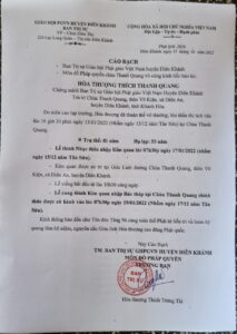 Ban Trị sự Giáo hội Phật giáo Việt Nam huyện Diên Khánh, Môn đồ Pháp quyến chùa Thanh Quang vô cùng kính tiếc báo tin: