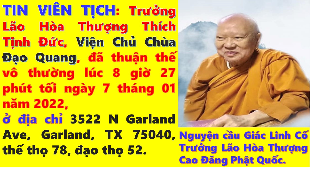 Kính thông báo đến chư Tôn đức Tăng Ni cùng toàn thể Phật tử liễu tri và hoan hỷ quang lâm hộ niệm, nguyên cầu Giác linh Hòa thượng cao đăng Phật quốc.