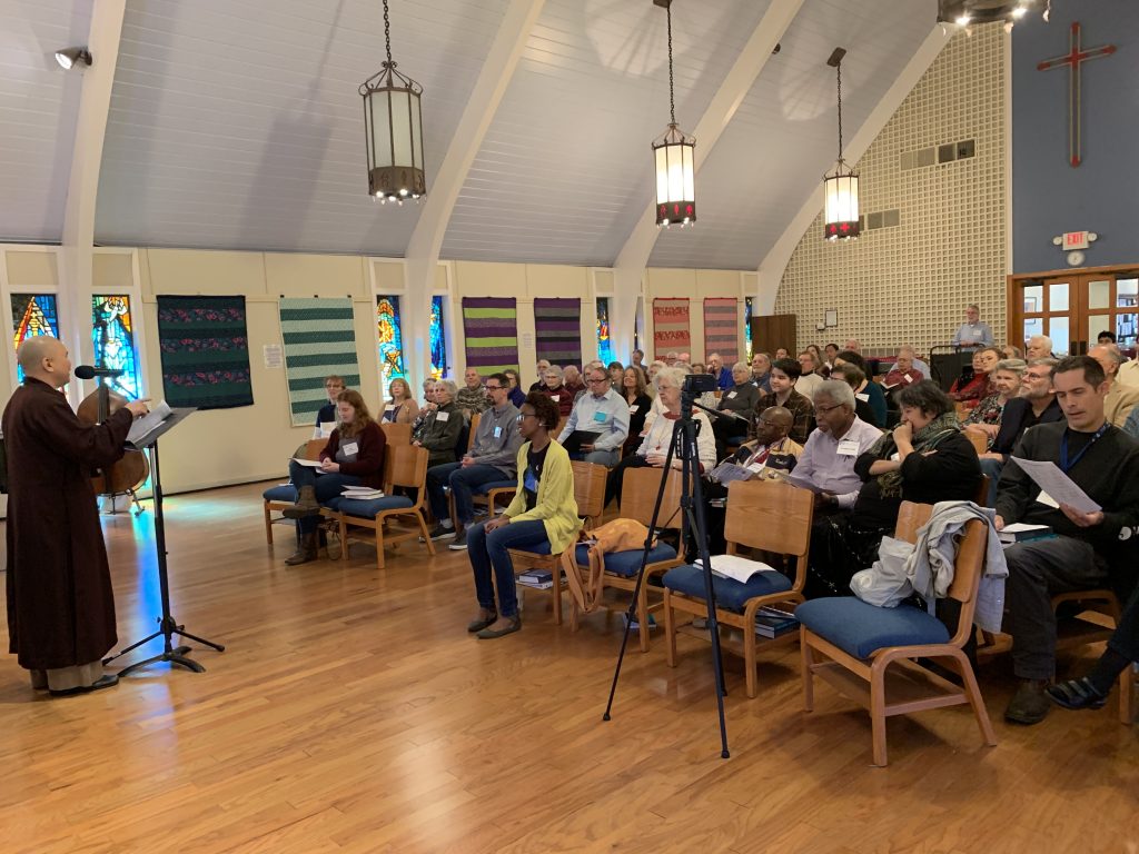 Khi hoan hỷ nhận lời mời từ hai vị Linh Mục Laura Haywood và Diania Garcia, Thầy Thích Trừng Sỹ, Trú trì Chùa Pháp Nhãn ở thành phố Austin, Texas, thân lâm tới Nhà Thờ ở thành Phố San Marcos, tiểu bang Texas, để chia sẻ Thiền tập, Thiền Ca, và bài Pháp thoại ngắn mang tựa đề “Thực Tập Con Đường Chánh Có Tám Chi Phần.”