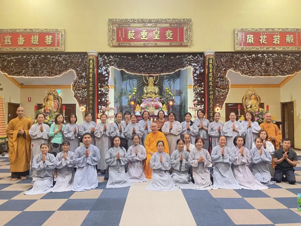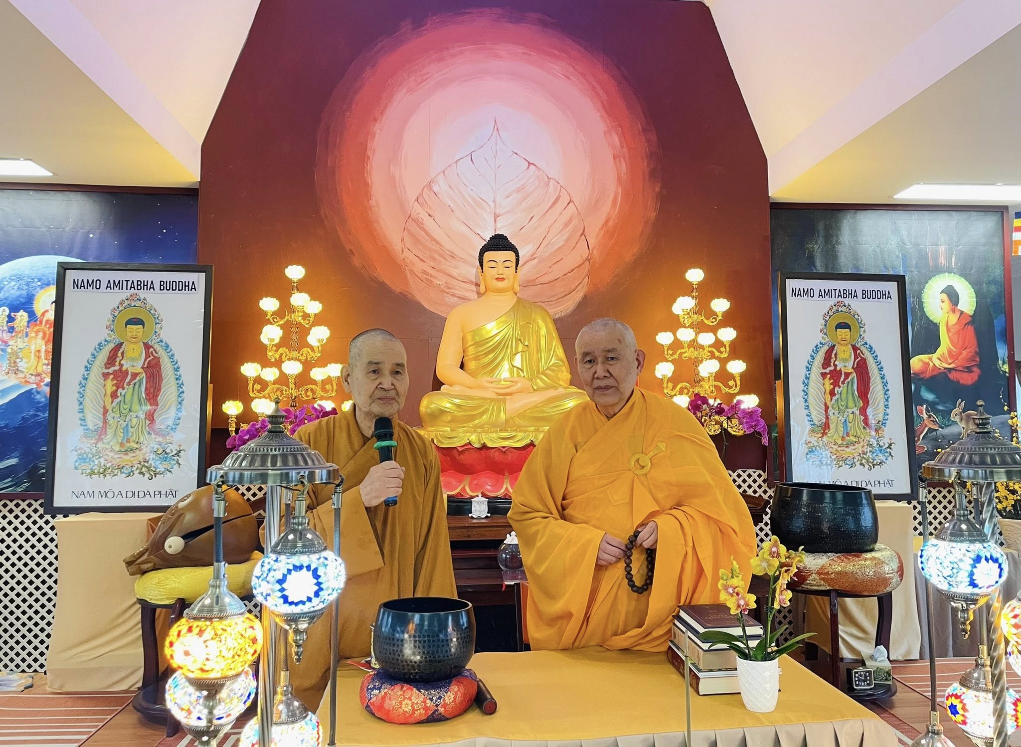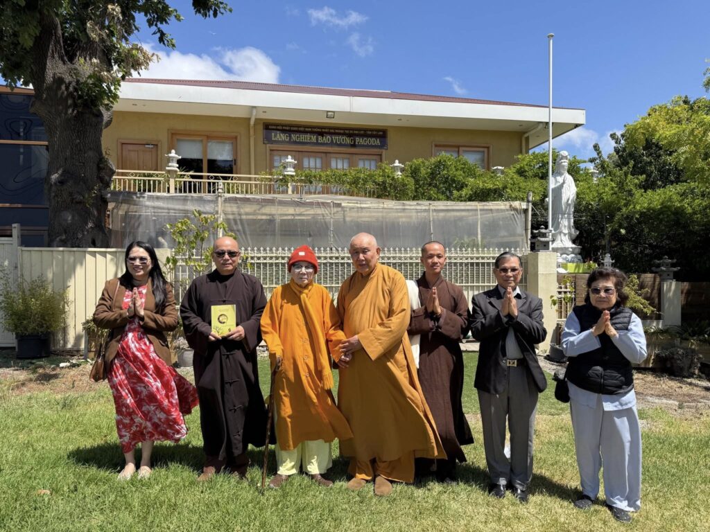 Sáng Chủ Nhật ngày 11.1.2026 chúng tôi được Phật tử Chúc Vũ chở từ Thiền Lâm Pháp Bảo về Tổ Đình Pháp Bảo để gặp gỡ Anh Quảng Giải Huỳnh Kim Hóa, đương kim Trưởng Ban Hướng Dẫn GĐPTVN Hải Ngoại, đến vấn an sức khoẻ của tôi cũng như trình bày về trại Vạn Hạnh trong thời gian sắp đến. Kế tiếp là gặp gỡ Quý Phật tử tại Thiền Đường chùa Pháp Bảo từ 10:00AM đến 11:15AM cùng ngày. Đề tài hôm đó tôi đã nói về tinh thần Phật Giáo của Nguyễn Du qua truyện Kiều và phần cuối đã giới thiệu về các Tạng Kinh Phật Giáo bằng Hán Văn, Linh Sơn Pháp Bảo Đại Tạng Kinh và Thanh Văn Tạng bằng Việt ngữ v.v…, mọi người chăm chú lắng nghe và rất hoan hỷ với thời Pháp Thoại nầy, trong khi đó trời bên ngoài đã bắt đầu có những giọt mưa nặng hạt, để bù lại cho thời tiết ngày trước đó đã lên trên 40 độ C. Kế tiếp Đạo Hữu Giáo Sư Chân Đạo Hành đã giới thiệu tác phẩm “Dễ nhất là tu tại gia” với thính chúng và nhiều người thỉnh sách để ủng hộ chương trình kiến tạo mái ngói tháp Vãng Sanh tại Pháp Bảo.