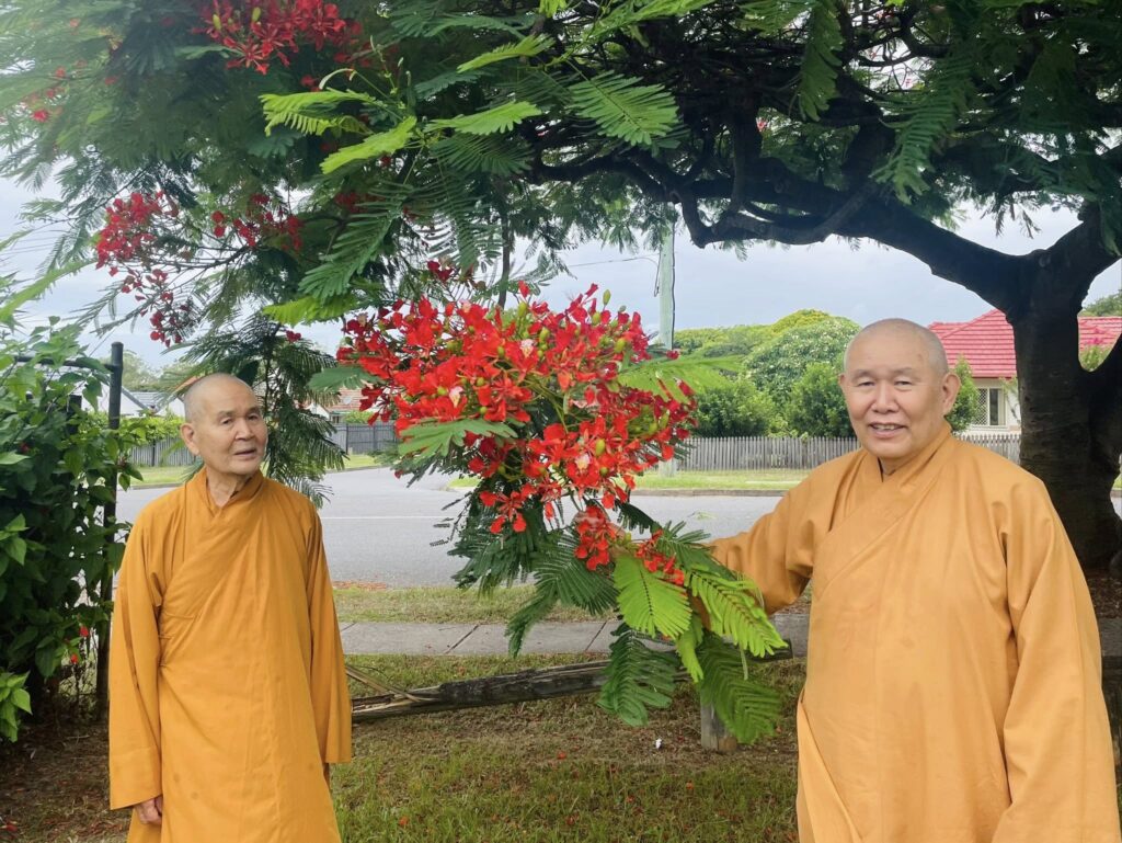 Sáng sớm ngày 12.1.2026 (thứ Hai) Phật Tử Chúc Nguyên đã đến Thiền Lâm Pháp Bảo vùng Wallacia để chở chúng tôi gồm Hòa Thượng Thích Bảo Lạc, tôi và Thầy Tâm Thức khởi hành đến Kholo, nơi có Ni Viện Minh Quang và Tinh Xá Vô Ưu do Hòa Thượng Thích Minh Hiếu sáng lập. Từ Sydney chạy đến địa phương nầy mất 12 tiếng đồng hồ lái xe, qua ba lần dừng nghỉ dọc đường. Càng đi lên phía Bắc, càng gần đường xích đạo, nên nắng gắt hơn và cây cỏ khác hơn vùng Sydney hay Adelaide. Dọc theo hai bên xa lộ mà người Úc gọi là: Motorway và Freeway toàn là những hàng cây bạch đàn và những cây dương liễu. Xa xa đâu đó có những thửa ruộng trồng mía, trồng chuối rộng bạt ngàn, trông muốn mỏi mắt vẫn chưa hết.