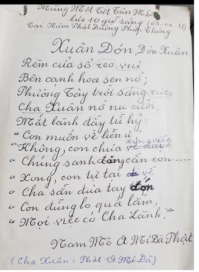 Thủ bút của Sư Ông Thích Thiện Huệ khi còn sinh tiền