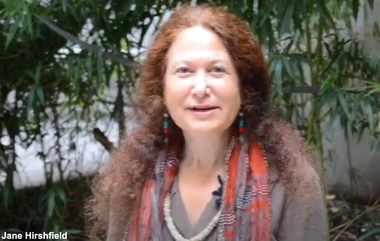 Sinh năm 1953, Jane Hirshfield là một nhà thơ được nhiều giải thưởng, một người viết nhiều tiểu luận uyên bác về mỹ học, và là một nhà thơ thỉnh giảng tại các đại học Stanford University và UC-Berkeley. Bà là tác giả 9 tập thơ, 2 tuyển tập các bài lý luận, biên tập và đồng dịch thuật 4 tuyển tập thơ, tập trung vào các nhà thơ phụ nữ và Nhật Bản. Nổi tiếng từ rất sớm, bài thơ đầu tiên của bà in trong tạp chí The Nation năm 1973, được trao giải thưởng thơ năm sau là Discovery Award. Rồi tới một lúc, bà gạt bỏ hết chuyện sáng tác, để vào thiền viện San Francisco Zen Center tu học trong 8 năm.