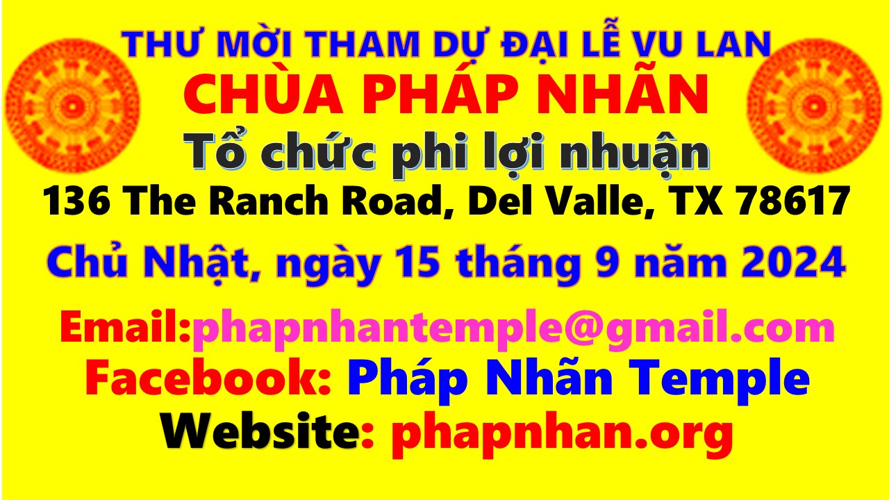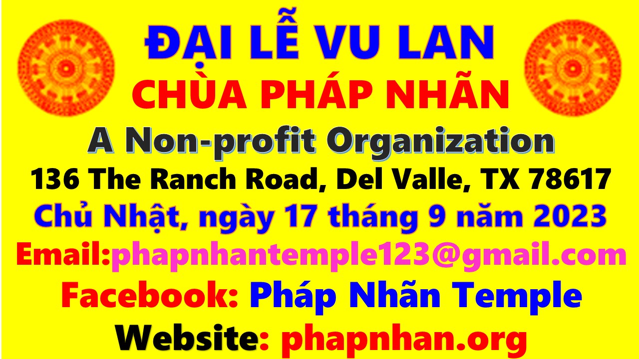Phẩm, Hội Đồng Điều Hành nhất tâm kính lễ khánh chúc chư Tôn đức Tăng Ni. Cầu xin cho tất cả chúng ta mắt sáng như nhật nguyệt và lòng rộng như đại dương để mang lại năng lực cho Phật giáo Hoa Kỳ. Tôi cũng xin cầu chúc quý thiện nam tín nữ, quý đồng hương cùng gia đình một mùa Vu Lan nhiều cát tường và phước lạc.