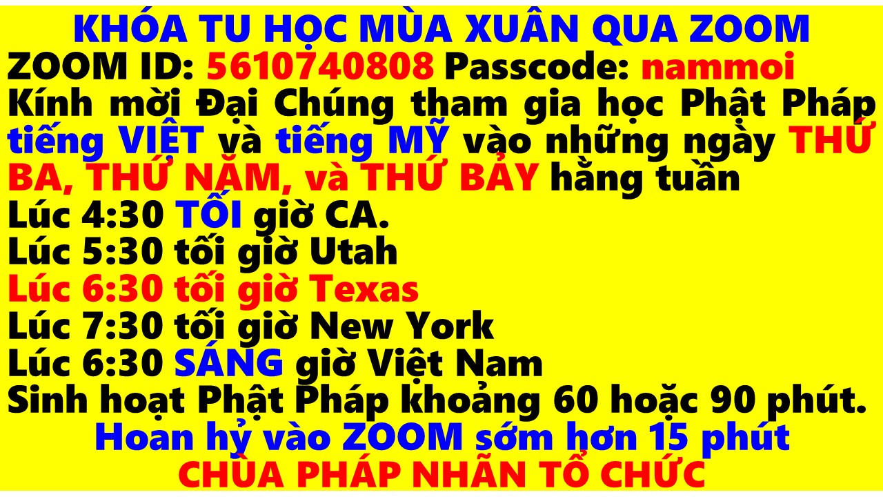 Chúng ta sẽ lần lượt học và thảo luận mười phương pháp tu tập ở lớp học Phật Pháp qua ZOOM hằng tuần.
