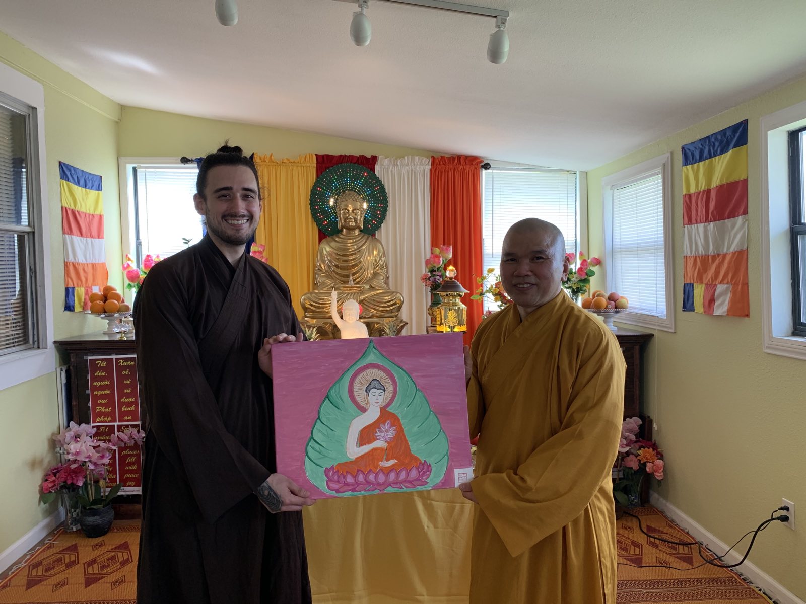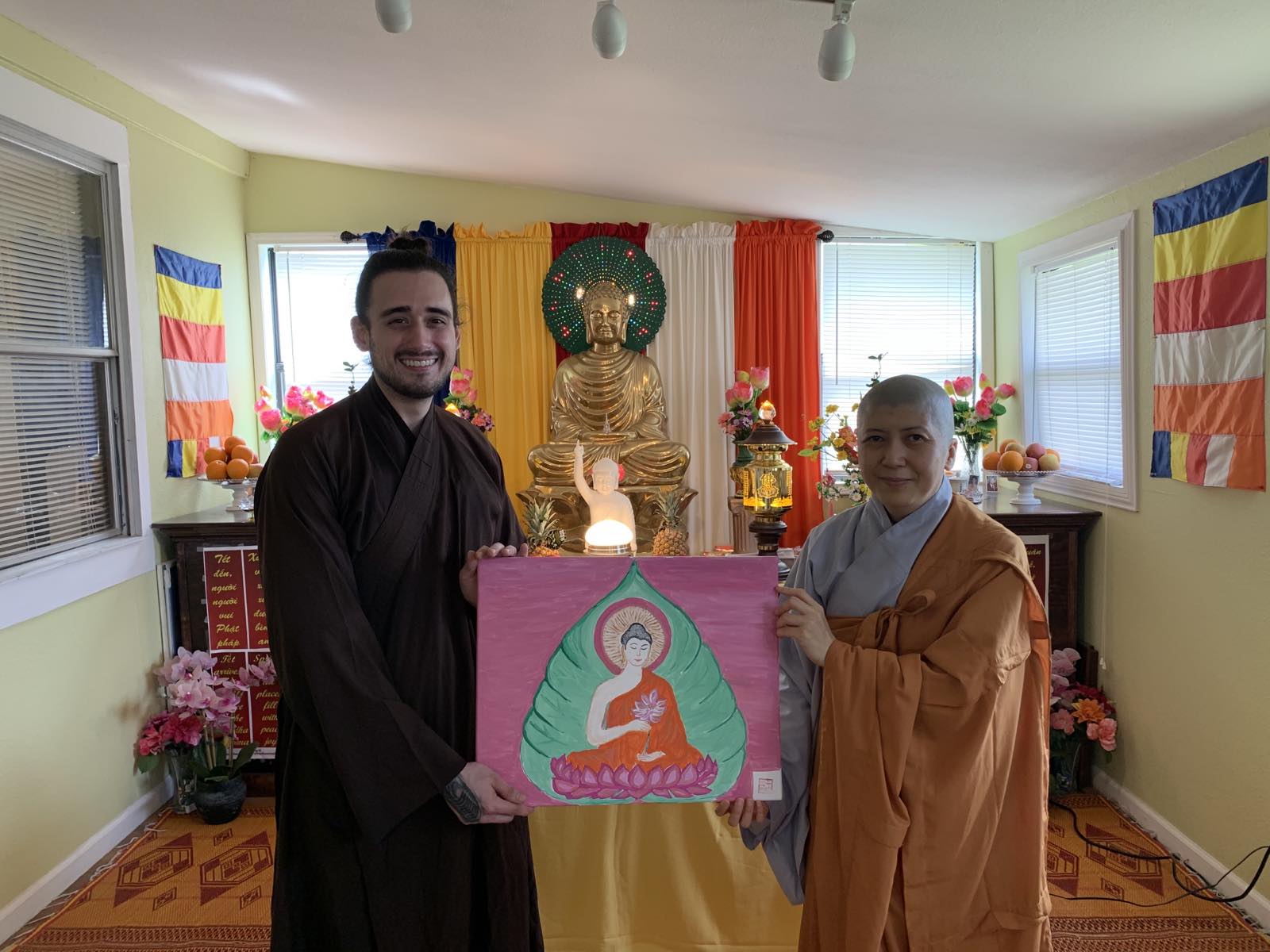 Hôm nay có đủ duyên lành, anh Michael trở thành đệ tử thuần thành của Đức Phật tại Chùa Pháp Nhãn. Anh được Pháp danh là Minh Đạo; Minh có nghĩa là sáng suốt, rõ ràng, chân chánh; Đạo có nghĩa là con đường, hướng đi, hoặc là Phật Pháp, v.vv… Vì vậy, Minh Đạo có nghĩa là người đệ tử tu học Phật Pháp thuần thành của Đức Phật ngày nay. Tin vui đến Cả Nhà mình vui.