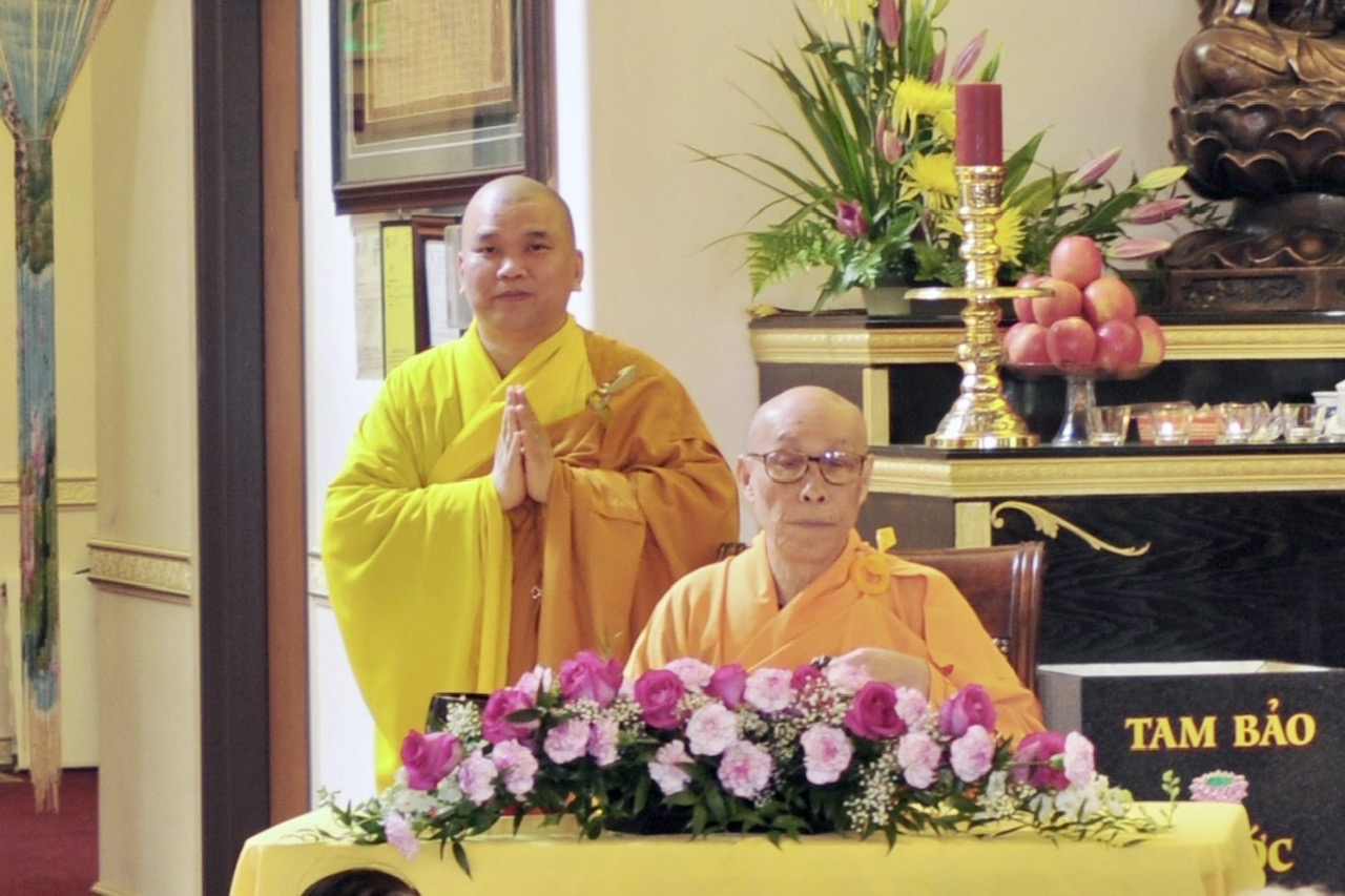 Trưởng lão Hòa thượng Thích Minh Tâm và T. Trừng Sỹ ở Chùa Cổ Lâm, Seattle năm 2011