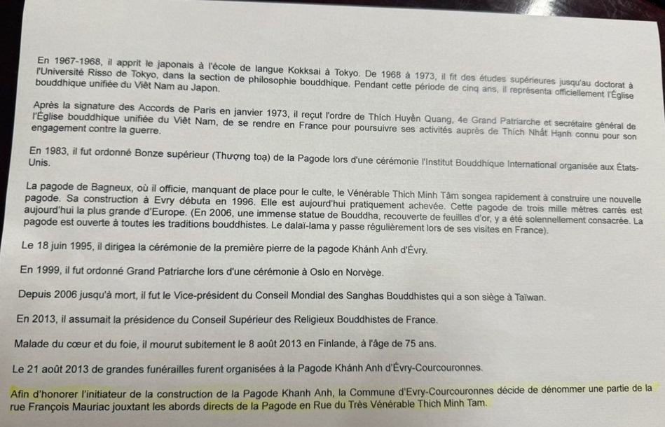Trưởng lão Hòa thượng Thích Minh Tâm được vinh danh đặt tên đường bên cạnh Chùa Khánh Anh – Pháp Quốc