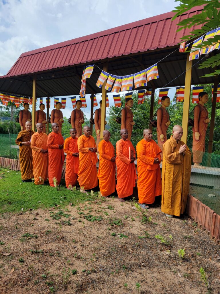 Sáng 13 tháng 07 năm 2023, đoàn rất hạnh phúc và may mắn được viếng thăm và chiêm bái đảnh lễ bộ Kinh Tạng viết trên Lá Diệp (Tripitaka writeen in Palm Leaves) được thờ tại Chùa Aloka Vihara Matale. Sau khi dùng cơm trưa xong, đoàn viếng thăm Chùa Srivijayathilakaramaya Bogahakotuwa ở Matale, nơi sư huynh của Dr. Sumedha Thero làm trụ trì. Chùa có 10 chú sadi trẻ tuổi đang tu học.